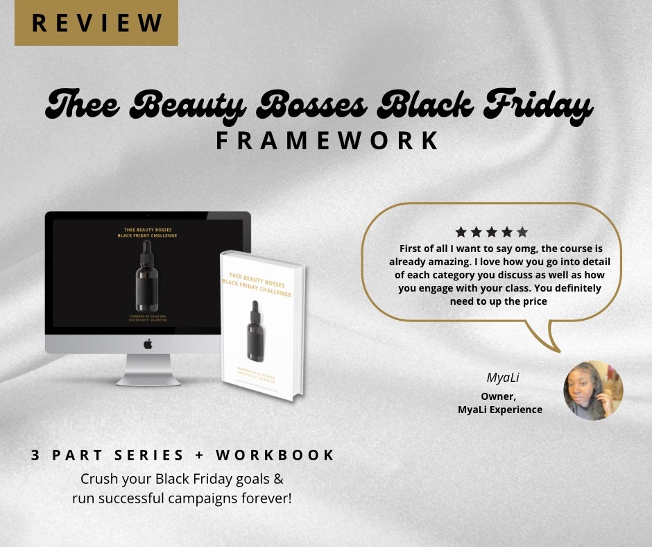 Can’t make the time commitment? No worries! You can purchase the replay and watch at your leisure while following along with your workbook that’s also included in your purchase. Don’t sleep on it too long because Black Friday is 6 weeks away!